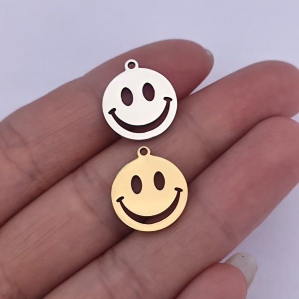 پلاک گردنبند طرح ایموجی خنده با جنس استیل 316 ضدحساسیت در دو رنگ نقرهای و طلایی همراه با زنجیر دیپلمات 45 سانتی استیل قابل سفارش هست.