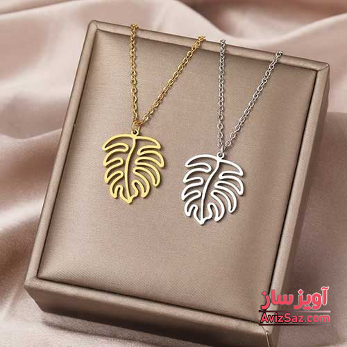 پلاک گردنبند طرح برگ با جنس استیل 316 ضدحساسیت در دو رنگ نقره‌ای و طلایی همراه با زنجیر دیپلمات 45 سانتی استیل قابل سفارش هست.