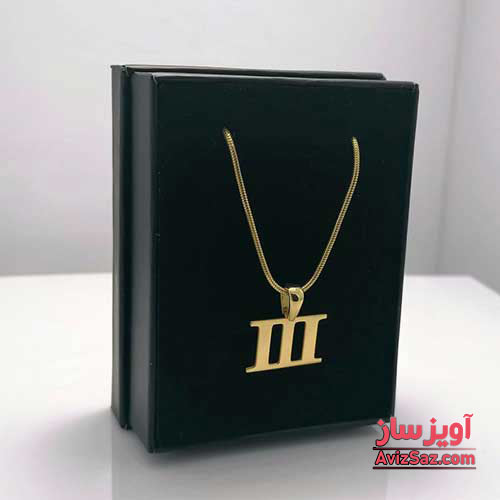 پلاک گردنبند طرح عدد یونانی ۳ با جنس استیل 316 ضدحساسیت در دو رنگ نقرهای و طلایی همراه با زنجیر دیپلمات 45 سانتی استیل قابل سفارش هست.