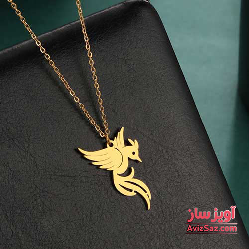 پلاک گردنبند طرح ققنوس با جنس استیل 316 ضدحساسیت در دو رنگ نقرهای و طلایی همراه با زنجیر دیپلمات 45 سانتی استیل قابل سفارش هست.