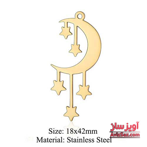 پلاک گردنبند طرح ماه و ستاره با جنس استیل 316 ضدحساسیت در دو رنگ نقره‌ای و طلایی همراه با زنجیر دیپلمات 45 سانتی استیل قابل سفارش هست.