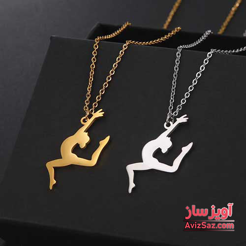 پلاک گردنبند طرح ژیمناستیک با جنس استیل 316 ضدحساسیت در دو رنگ نقرهای و طلایی همراه با زنجیر دیپلمات 45 سانتی استیل قابل سفارش هست.