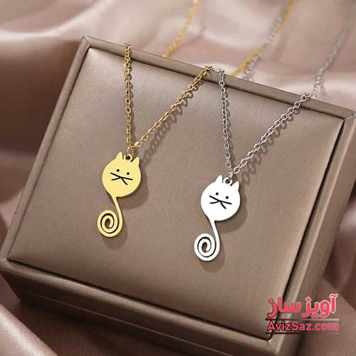 پلاک گردنبند طرح کیتی با جنس استیل 316 ضدحساسیت در دو رنگ نقرهای و طلایی همراه با زنجیر دیپلمات 45 سانتی استیل قابل سفارش هست.